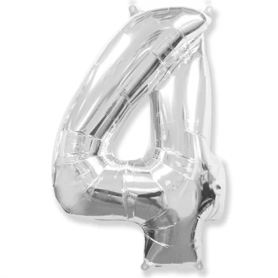 Гелеві фольговані цифри 4 срібло літають від тижня до місяця. Розмір фігури: 102х83 см. Можливо надути цифру повітрям, яка буде стояти на підставці з повітряних кульок. Фольговані кульки виготовляють з лавсанової плівки та покривають металізованим тонким шаром. При холоді куля здувається, але коли повернути в тепле середовище кулька набуває звичної форми. Саме тому потрібно переносити їх з холоду в тепло поступово.
